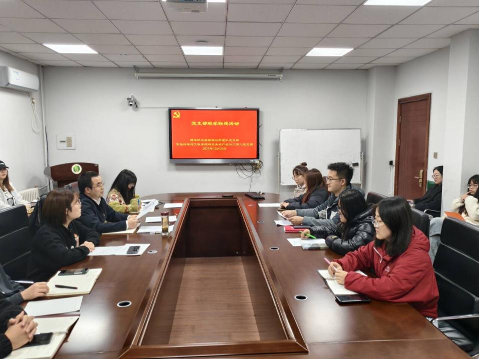 为全面贯彻党的二十大届四中全会精神,构建跨学科党建协同创新平台,2025年10月29日晚,食品科学与工程学院研究生农产品加工第二党支部联合理学院生物物理创新团队党支部在理科楼E321会议室开展“联学联建凝共识,支部联动促发展”主题活动。理学院生物物理创新团队党支部书记朱杰教授和食品学院研究生农产品加工第二党支部书记聂泓清出席了此次活动。活动由理学院生物物理创新团队党支部副书记马梦瑶主持,双方党支部党员和积极分子共计30余人参加。