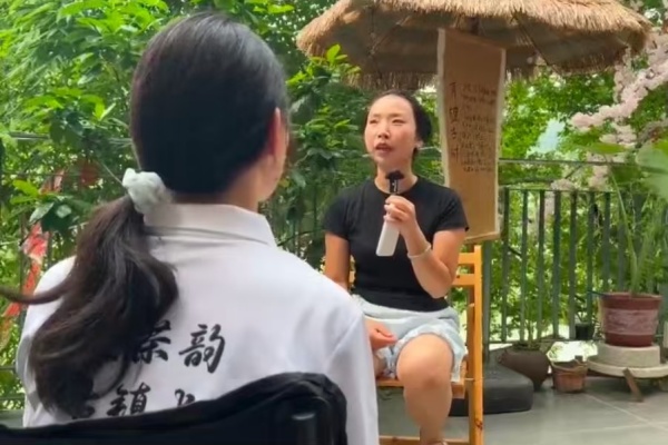 7月19日,实践团队来到古镇的‘焕杯茶社’,对90后返乡创业青年刘芸芸进行深度访谈。茶香氤氲中,刘芸芸向队员们详细讲述了从城市白领转型为茶社负责人的创业历程,分享"电商+茶旅"的创新模式。队员们深受触动,"刘芸芸的故事让团队成员看到,乡村振兴需要这样的青春力量和创新思维。"实践队的一名队员感慨道。