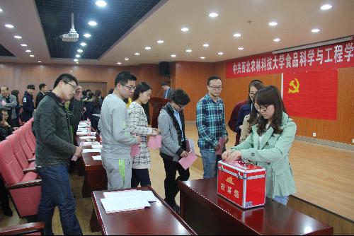 4月6日下午,食品学院出席学校第三次党代会代表选举大会在食品科学楼六层学术报告厅隆重召开,校党委常委、副校长冷畅俭全程参加了大会,院党委书记张振华主持大会,全院295名正式党员参加了选举大会。