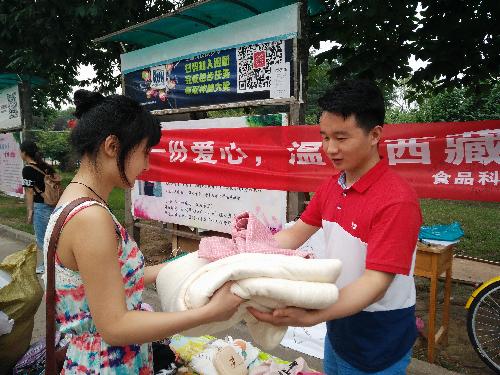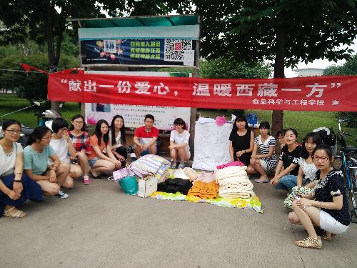 为了发挥党员先锋模范作用,践行“两学一做”教育精神, 6月26日,食品学院14级学硕第一、二党支部结合学院《“薪火”党建品牌初步创建》项目,在南北校区开展了以“献出一份爱心,温暖西藏一方”为主题的募捐活动,主要为藏南日喀则一带18个贫困县区捐赠衣物。