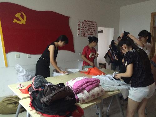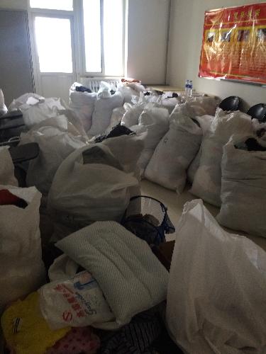 活动当天,在南北校区设置募捐点,通过悬挂条幅、发放宣传单等进行宣传,吸引学校各院系党员及普通同学的广泛参与。在大家的共同努力下,共捐赠衣物书籍35袋,衣物全部进行重新整理,清洗、消毒,后续进行邮寄工作。