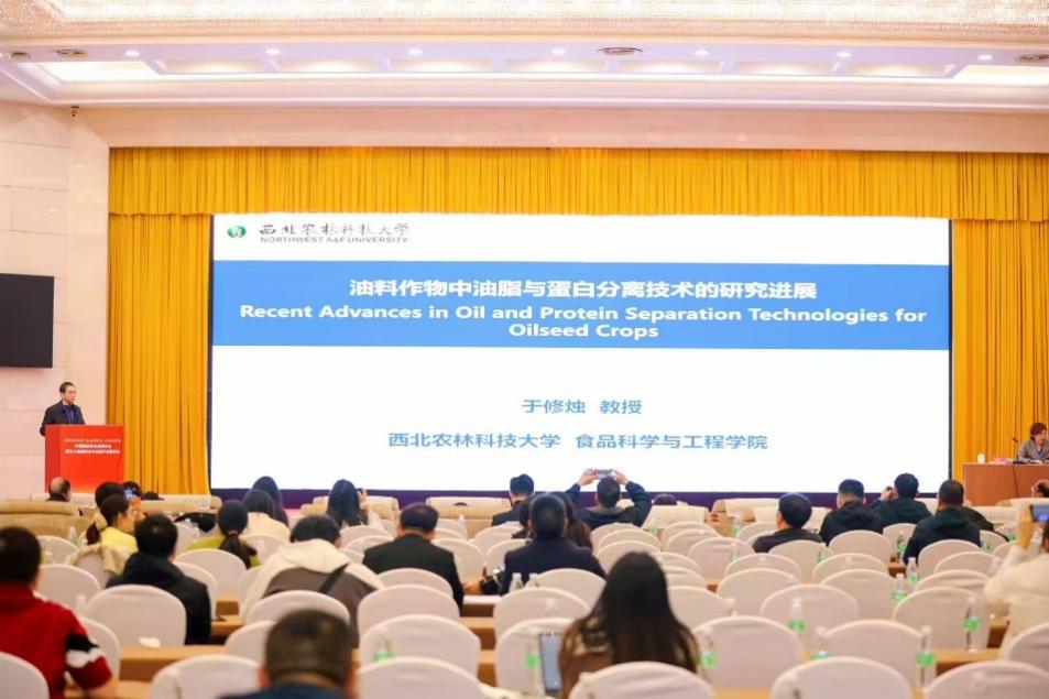 学术交流环节,我院于修烛教授在会上作《油料作物中油脂与蛋白分离技术的研究进展》专题报告,深度解析该领域技术前沿动态。他指出,油料作物作为食用油脂和植物蛋白的核心来源,传统机械压榨、溶剂浸出工艺长期存在蛋白变性、溶剂残留等痛点,开发绿色高效分离技术已成为行业高质量发展的核心方向,其团队在该领域的研究为行业提供了重要技术参考。与此同时,团队师生的6篇科技论文被年会论文集收录。