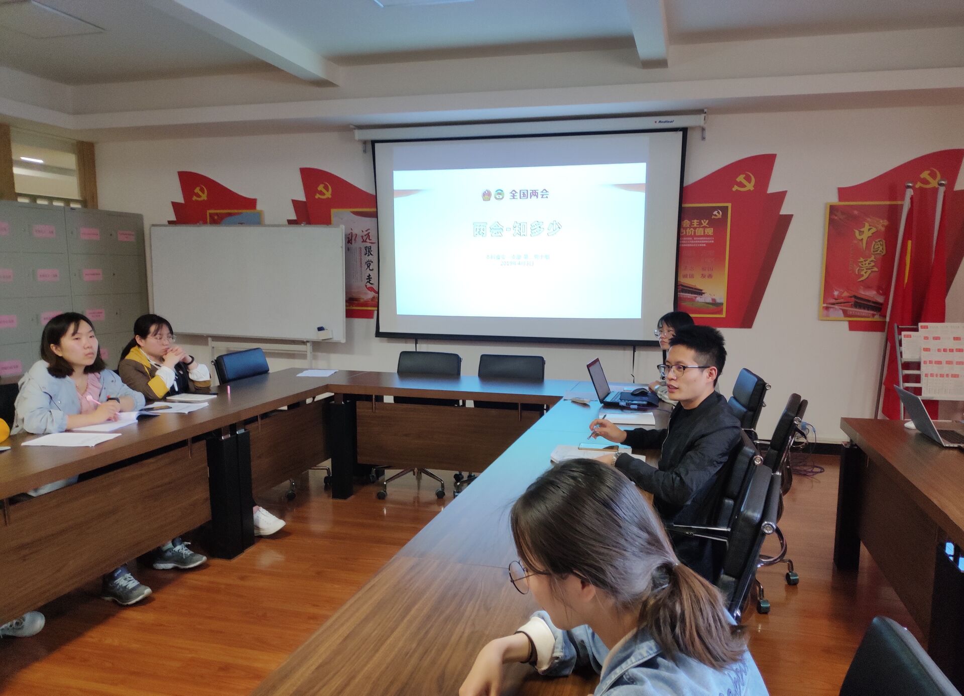 2019年4月3日下午,在支部书记田洪圆和康鹏主持下,本科食安一党支部和二党支部在食品学院五楼求实会议室开展以“热议两会”为主题的理论学习活动,全体支部成员热议2019年全国两会,学习两会精神。