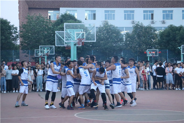 决赛赛前,食品学院的篮球队员们为比赛做了充足的准备,在比赛前认真做热身活动,丝毫不敢懈怠。而食品学院的观众们早早来到了篮球场,为我院队员加油助威。同学们激情饱满的呐喊声将赛场上的气氛推向热潮,在篮球场上形成了一道亮丽的风景线。伴随着哨声的响起,现场的气氛极具攀升,狭路相逢勇者较量。整个比赛过程中,队员们激情飞扬,双方比拼很激烈,团队之间的默契传球、完美配合引来围观同学一阵阵地喝彩。凭借着进攻端外线手感火热、内线强劲突破,最终我院以43:34的比分获得本场比赛的胜利,夺得2019年院系间篮球赛男子冠军。