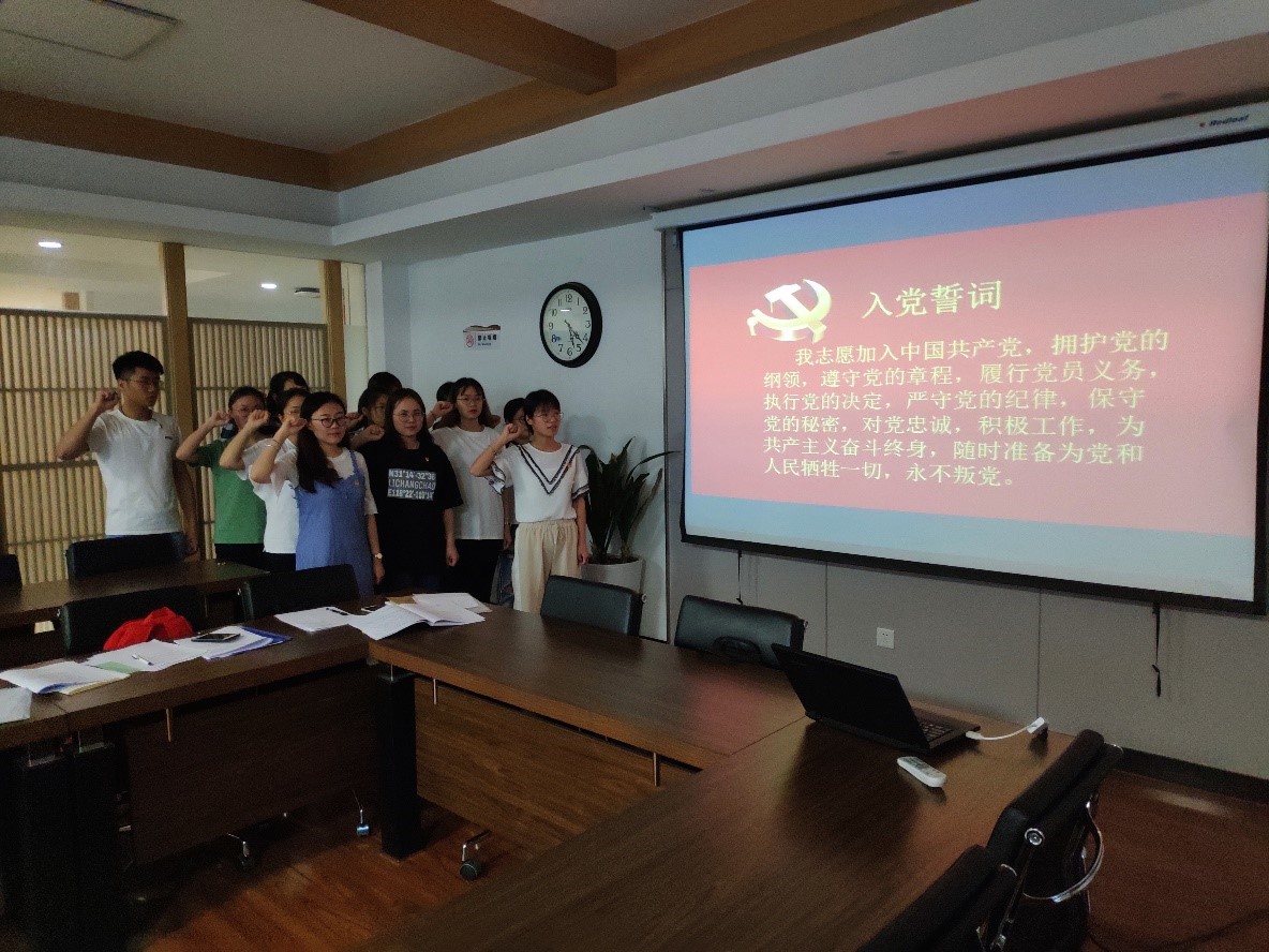 随后,在全体支部党员和预备党员的见证下,付雪同志带领新进的十一位预备党员面对党徽进行庄严宣誓,用自己的铮铮誓言宣示着对党的忠诚与热爱,澎湃着在学习生活中积极向前发展、发挥先锋模范作用而努力奋斗的激情!