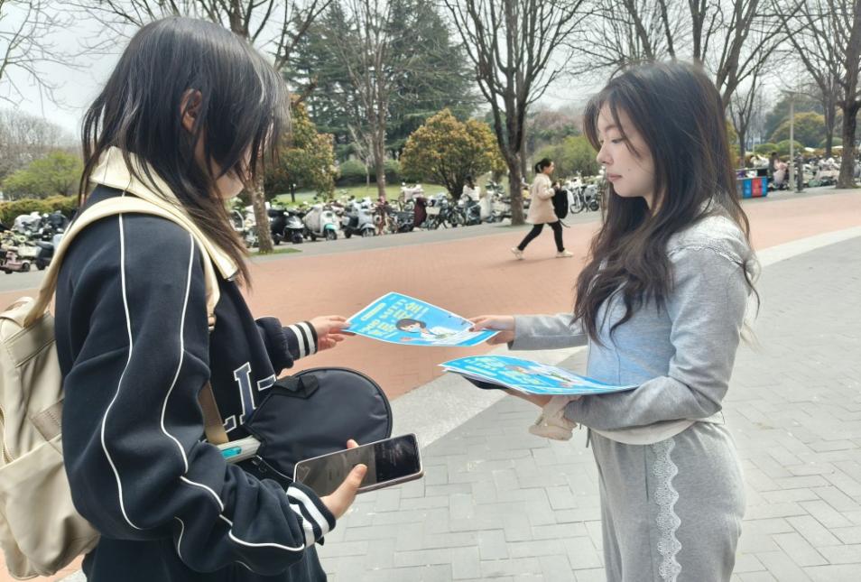 活动现场,志愿者们在西雕广场向过往同学发放食品安全科普传单。传单内容涵盖校园饮食安全要点、食品添加剂辨别方法、过期食品识别技巧等实用知识,从食堂餐具消毒规范到外卖食品选购注意事项,每一条内容都与同学们的日常健康息息相关。