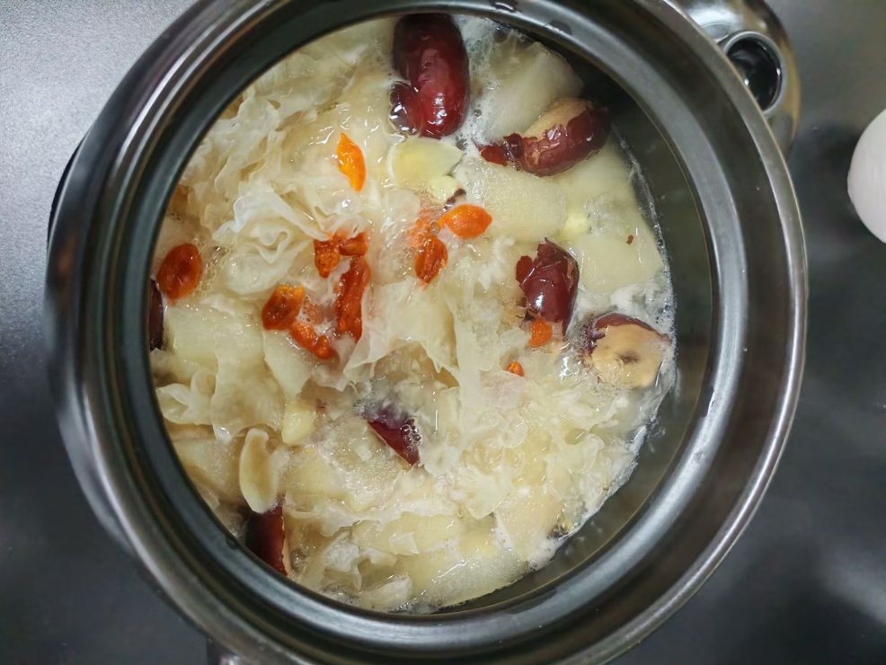 活动现场,指导老师首先详细讲解了银耳雪梨药膳的来源、发展脉络及养生原理,强调其润肺生津、滋阴暖身的功效与大雪时节“顺时养生”的传统理念,随后分步演示了食材处理、炖煮流程等关键步骤。同学们认真记录,在老师的指导下分组协作,称重、清洗、切块、炖煮有条不紊。过程中,大家充分发挥创意,根据个人口味偏好进行适度创新改造,在实践中锤炼动手能力。