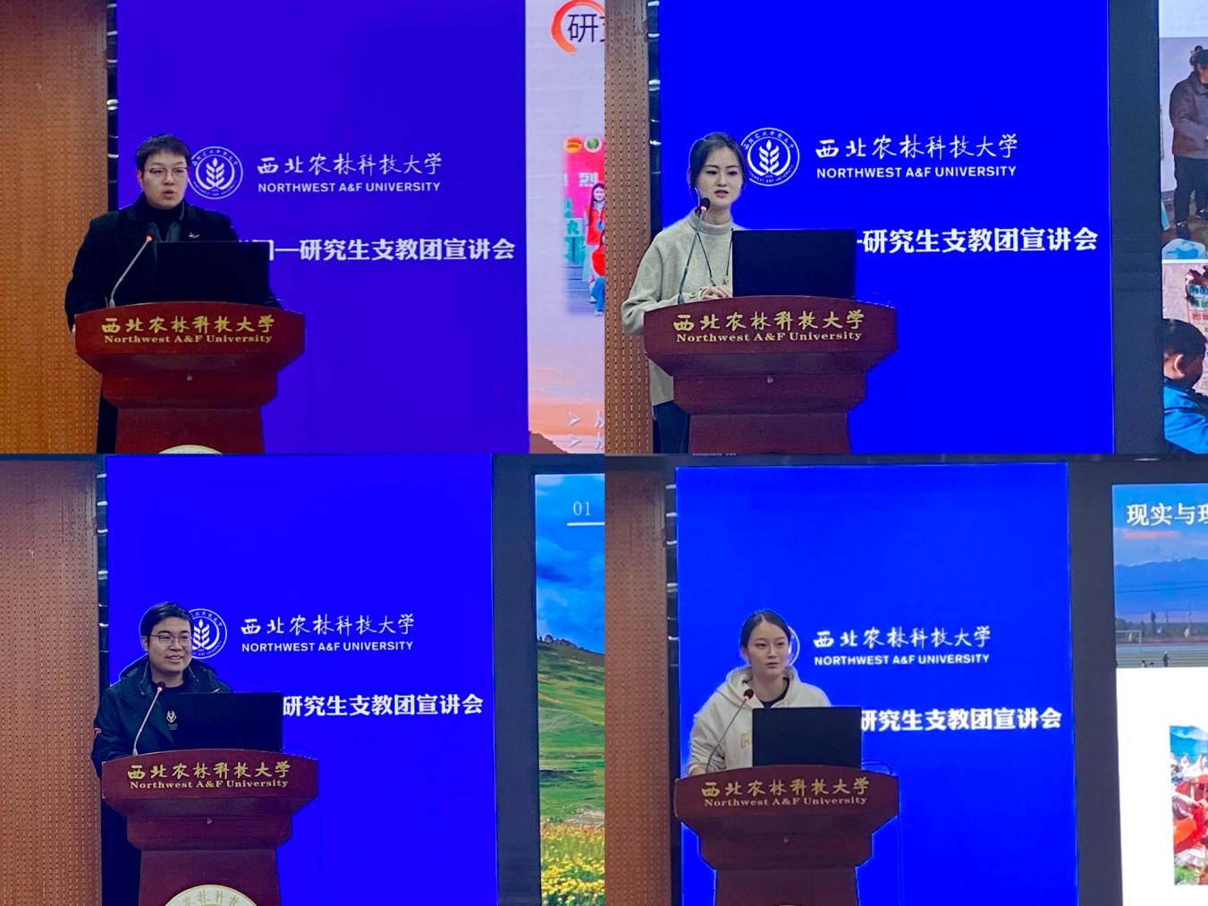随后,周一帆、胡滨阳、姜浩楠、李小丫四位支教团成员依次进入宣讲环节,他们以“亲身经历 + 实景呈现”的方式带领食品学子走进西部支教的真实场景,通过展示支教期间的鲜活照片,讲述课堂教学、课后帮扶、基层服务中的具体案例:从为山区学生设计特色课程,到帮助当地改善教学条件;从克服地域差异适应基层生活,到用耐心与爱心陪伴学生成长…… 一个个真挚的故事、一幕幕温暖的画面,不仅让学子们直观感受到支教公益事业的价值,更引导大家理性看待支教工作的责任与意义。