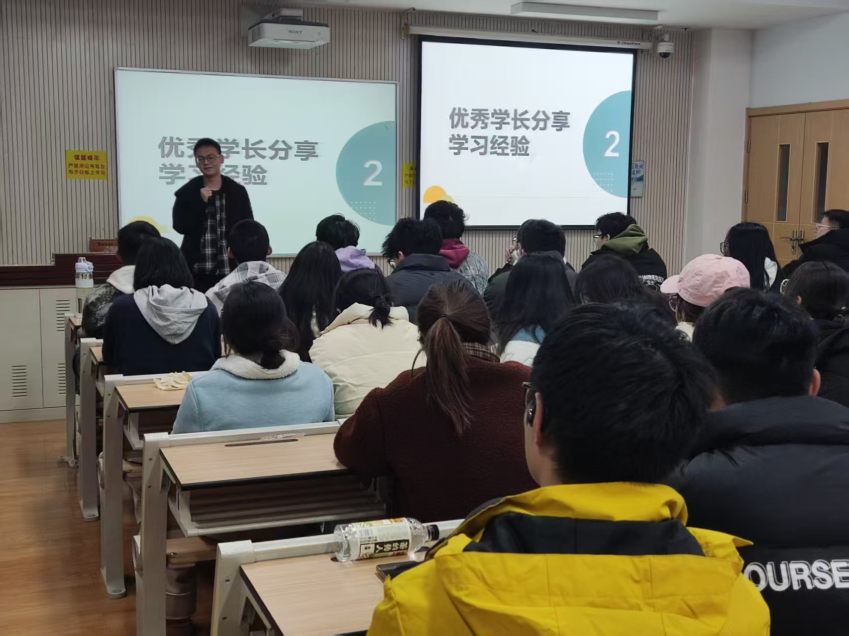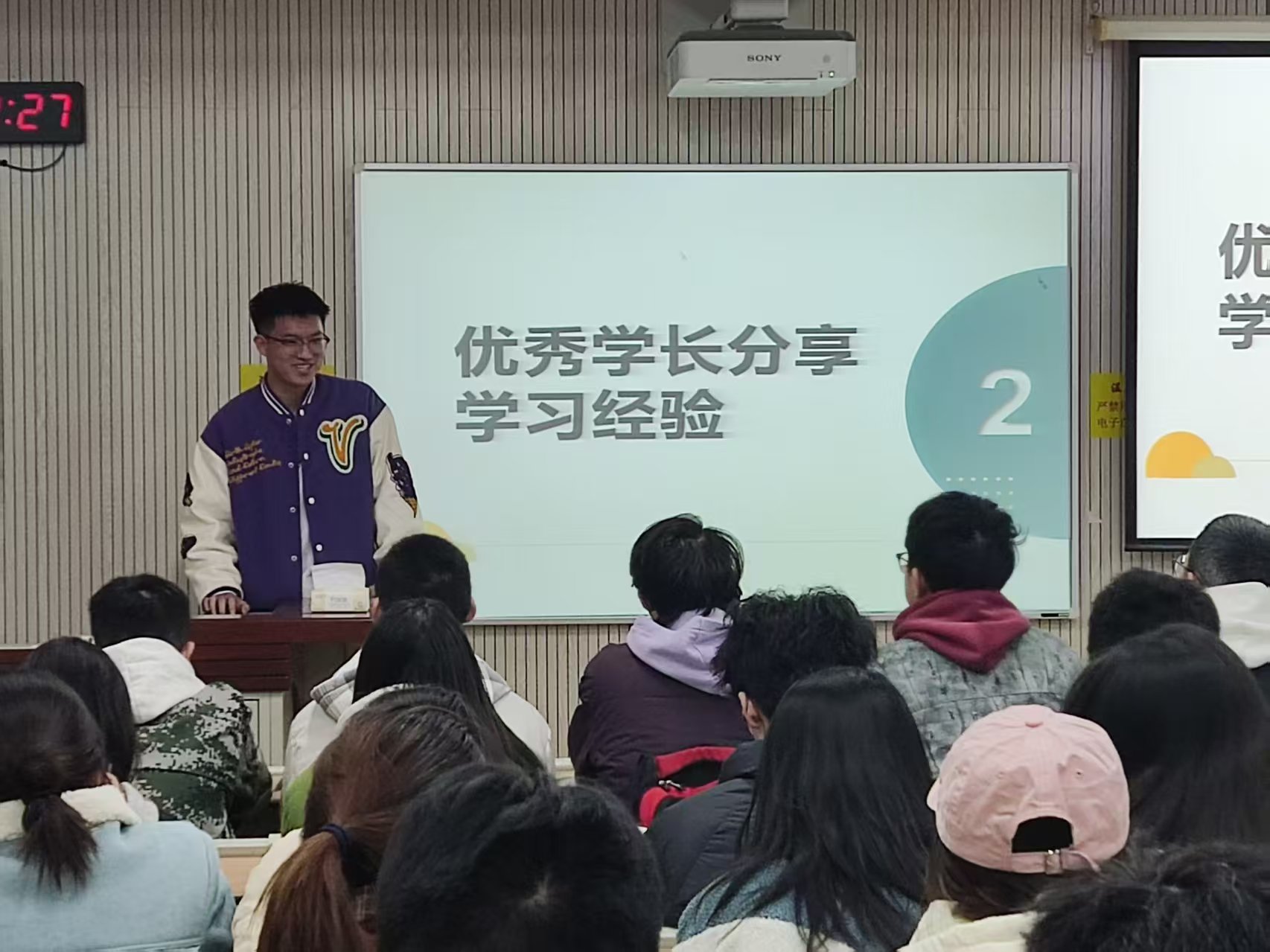 第二项,两位优秀学长受邀上台分享学习经验。学长们结合自身经历,从课程学习、社团活动、时间管理等多个方面给出建议,鼓励同学们积极探索适合自己的大学成长路径,让在场同学深受启发。
